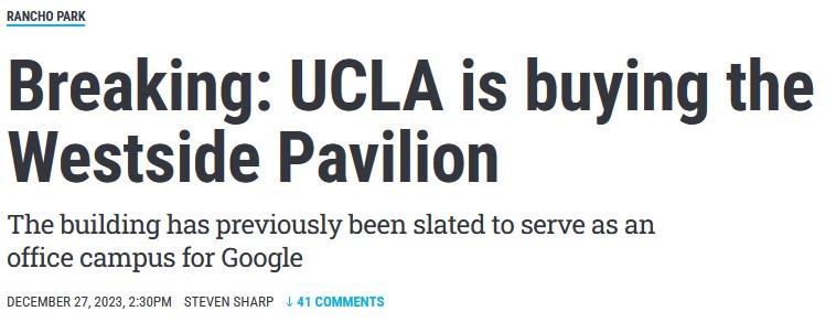 It was going to become offices like the Sherman Oaks Galleria, but that didn’t happen. Now UCLA is buying it. And then I guess we will see what happens after that. But that place is not where I spent part of my childhood. It is a different place and has been for quite a while.